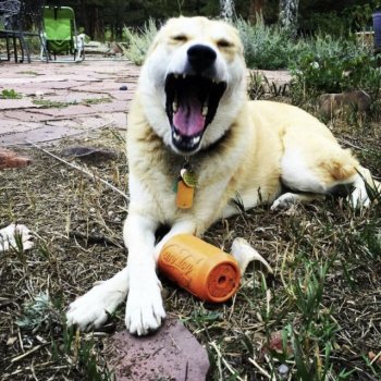 This toy is definitely a niche toy, but if you are looking to purchase a new Kong and have a particularly active dog who likes to run with his treats/toys, I highly recommend this. Also, it's adorable to see a dog with a can in its mouth (and if you can take a picture, you can make your family/friends think your dog likes to chew soda cans).